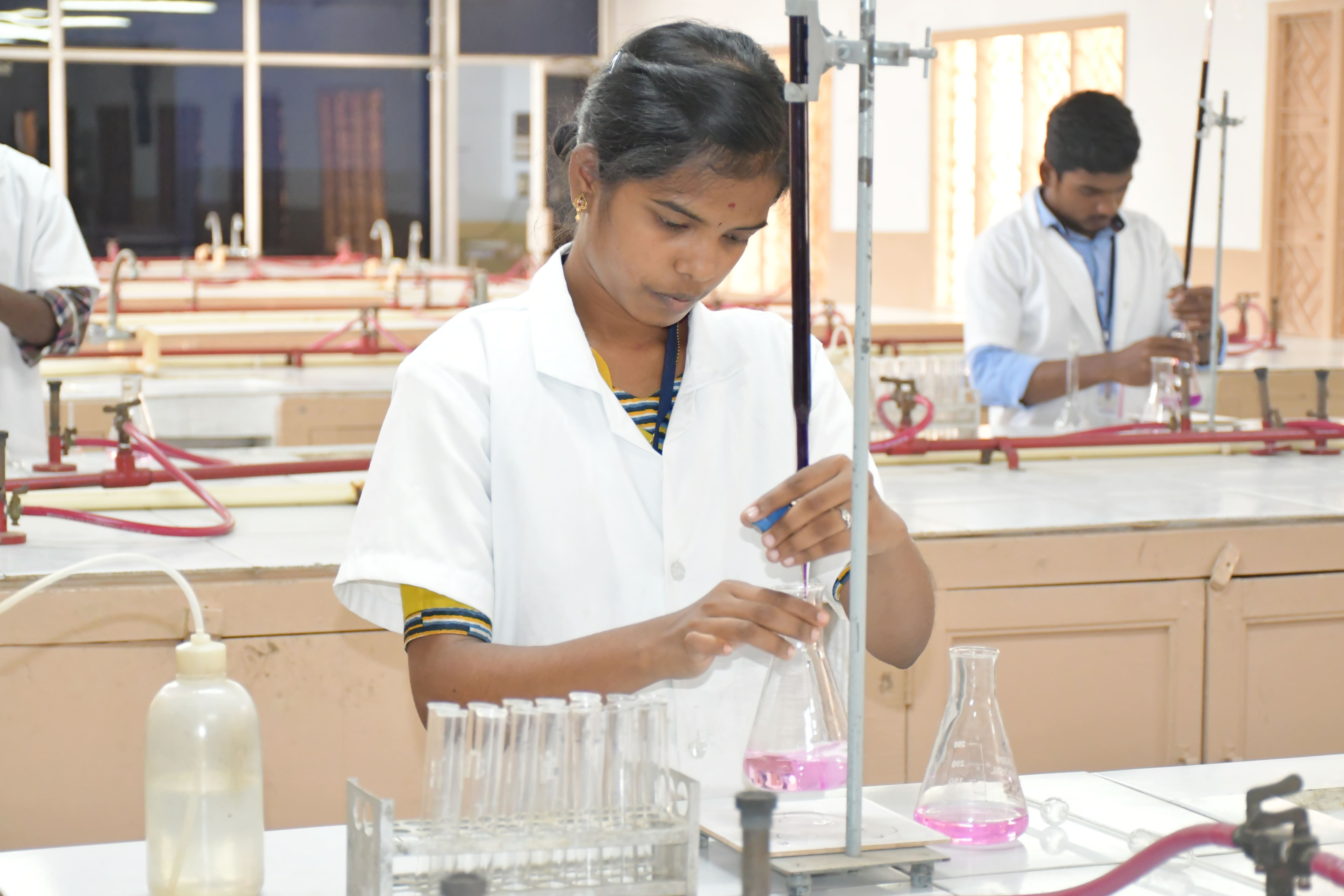 Our institution equipped with 24 X 7 electricity facility. We have Well constructed lab facility for Biotechnology, Biochemistry, Microbiology, Botany, Zoology and Computer Science.
